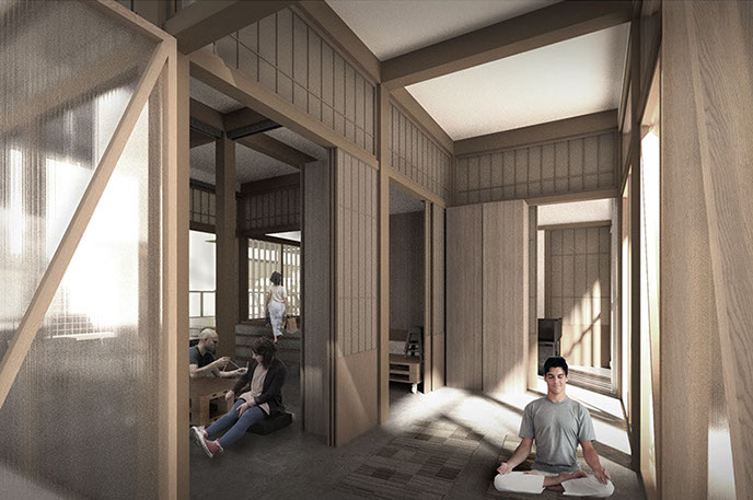 The task of the semester was to build co-housing units in Aarhus “latinerkvarteret” inspired by the subtle porosity, found in Japanese architecture. The project sought to explore the urban courtyard as a place for condensing city dwelling – as a response to the growing population demand for housing in the city’s midst.