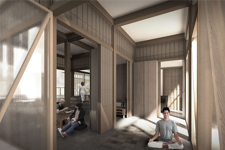 The Japanese 'Ken' measurement is used in subdividing and proportioning the building